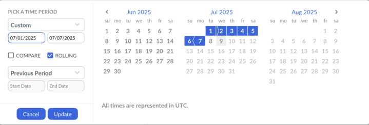 Yesterday, custom rolling date ranges functionality has been made available to Cloudability Dashboards users. With this update you will be able to:
