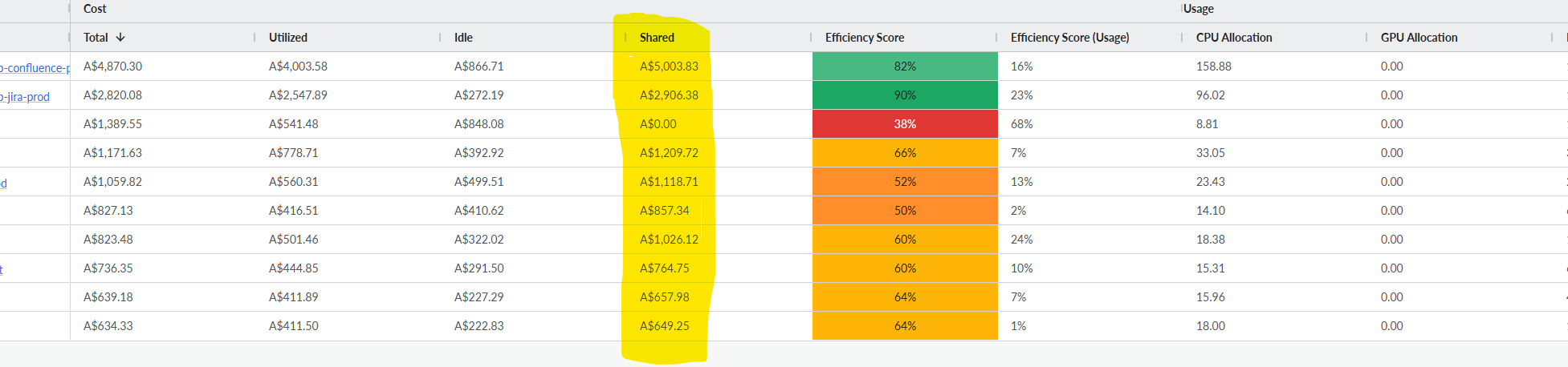 If by this you mean to hide the shared cost in the table, you can edit the columns you want to see.