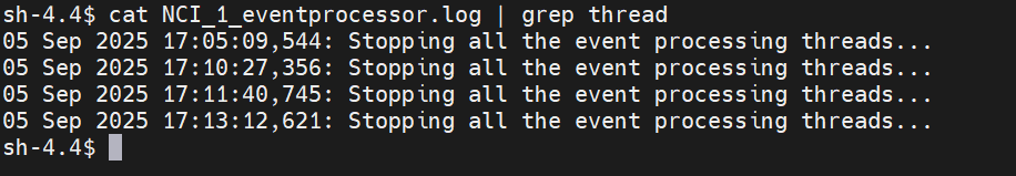 Verizon operates with two NCI server nodes: noi-nciserver-0 (primary) and noi-nciserver-1 (secondary). At times,the primary node’s thread count can reach up to 200, which is currently monitored through the eventprocessor.log. Since load balancing is distributed across both nodes, it is equally important to monitor the thread count of the secondary node. However, this is not currently possible because the eventprocessor.log is not enabled on noi-nciserver-1 shown in the screenshot attached. Verizon has requested the capability to monitor the thread count on the secondary node to enable proactive scaling based on workload.